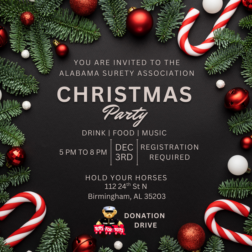 The Annual Alabama Surety Association Christmas Party will be held at Hold Your Horses located at 112 24th St N, Birmingham, AL 35203 from 5pm-8pm on December 3rd. Hold Your Horses has a variety of drinks to pick from including seltzers, craft cocktails and non-alcoholic beverages. We have the entire space reserved for our group and will also have food catered.